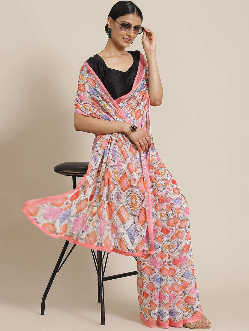 women's geometric pink colored saree with blouse - 18460295 - Very Small Image - 1