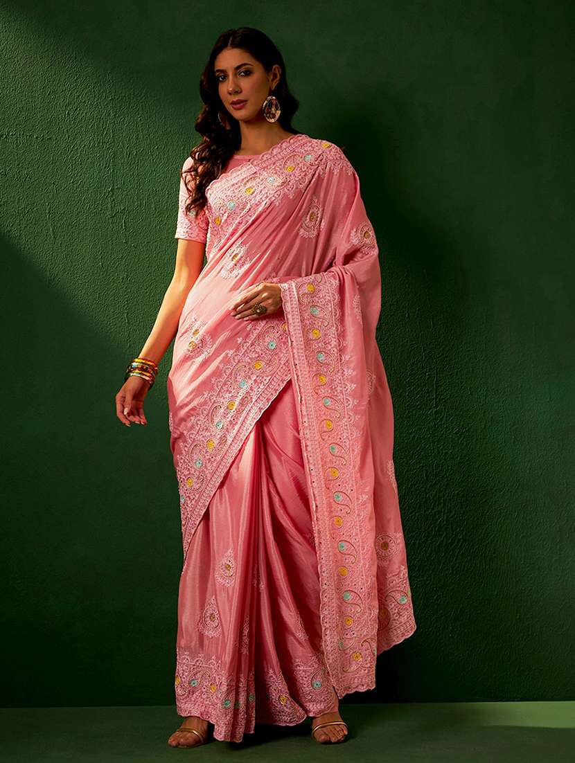 women solid with work embroidered saree with blouse