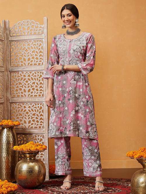 - Find gorgeous sets of ethnic wears in trending designs in pink colors suitable for casual wear of occasions.