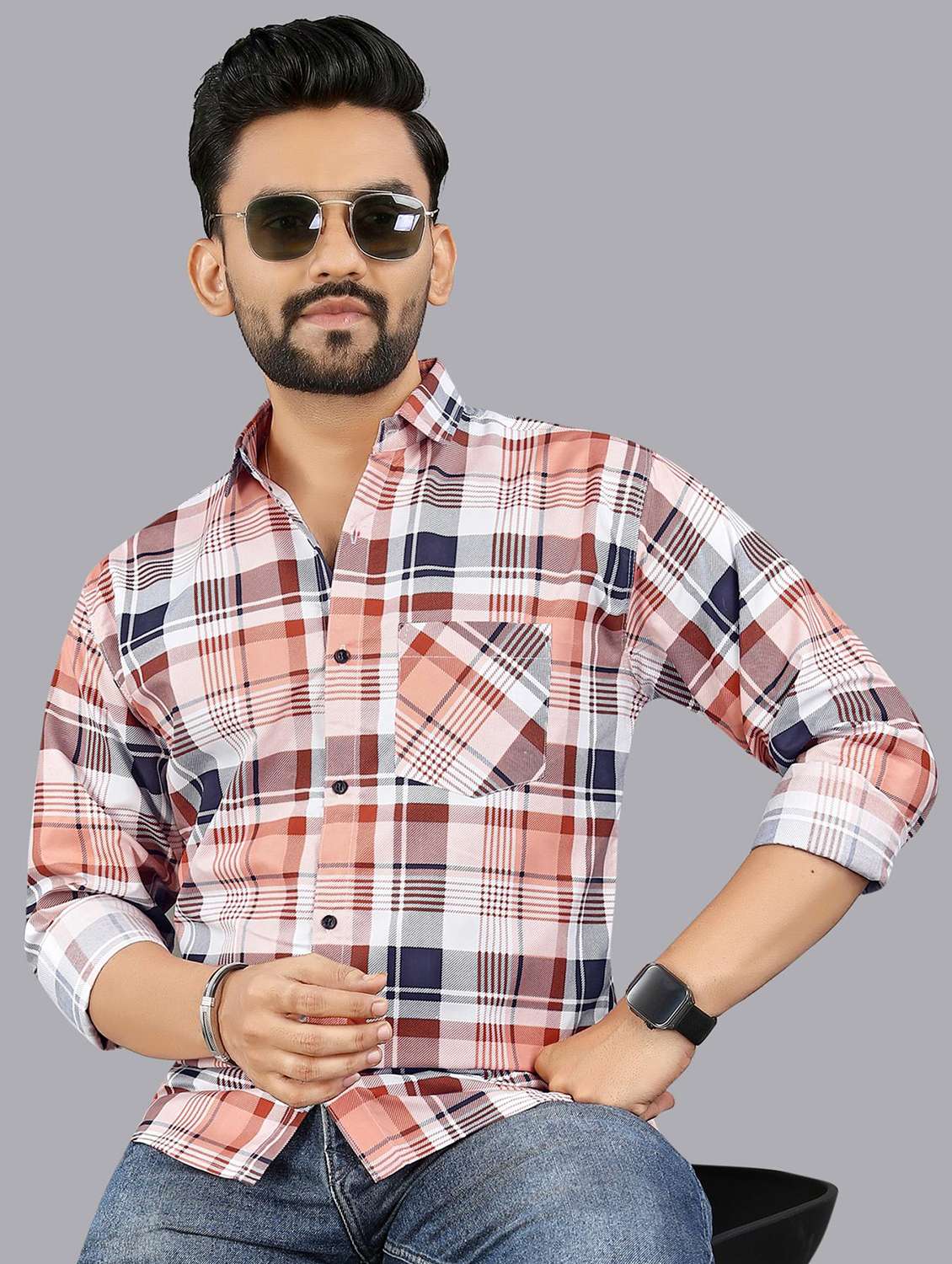 men checkered long sleeve regular fit casual shirt