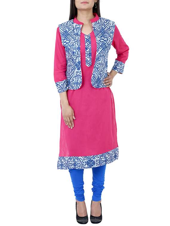 - » pink cotton printed straight kurta