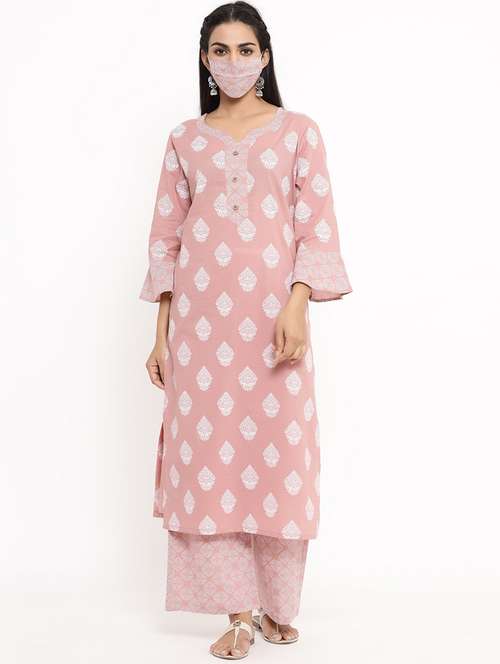 pink cotton kurta palazzo set