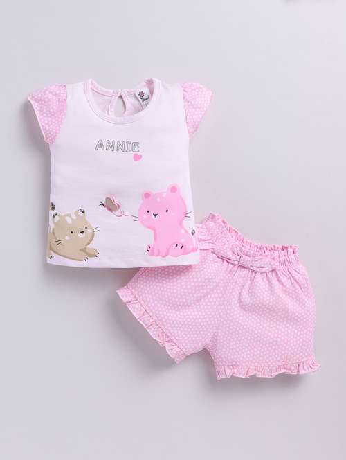 girls cute character printed shorts top set
