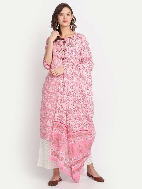 women printed kurta with trouser and dupatta set