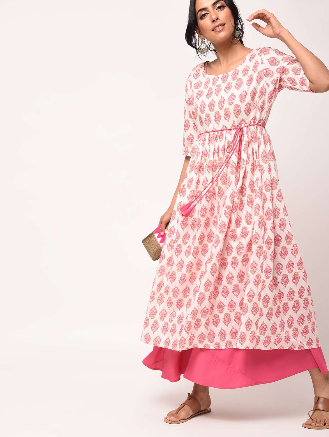paisley printed flared kurta with waist tie dori
