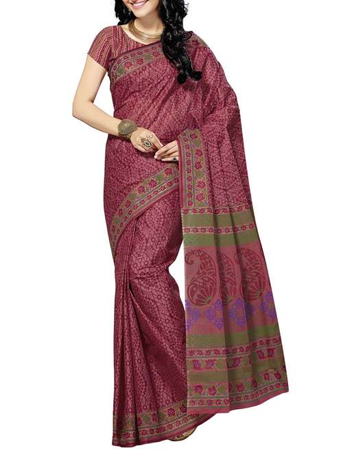 pink cotton printed saree with blouse - 14773128 - Very Small Image - 1
