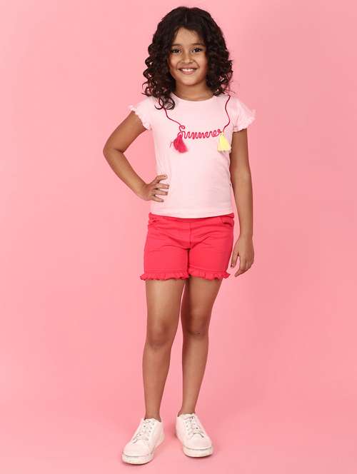 - » girls pink solid round neck shorts set