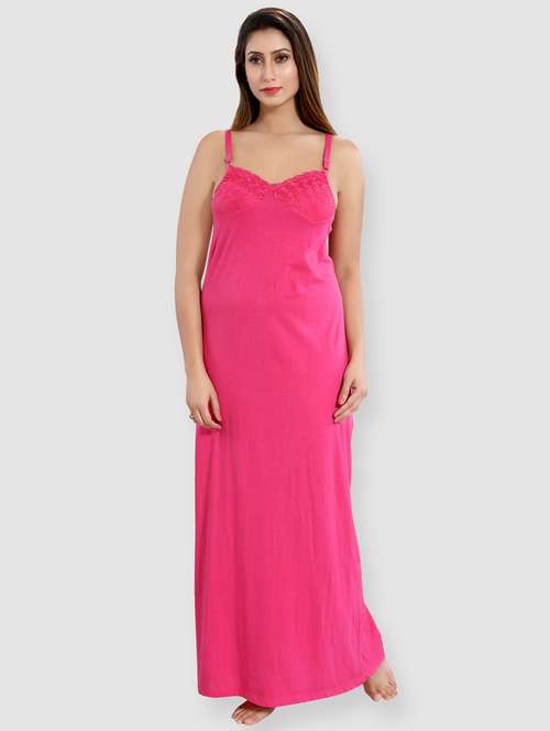 Make yourself relax & comfortable with this Cotton Slip Nighty from Be You. This Nighty has lace details on chest, adjustable shoulder straps and elastic details at the back for perfect. It is the ultimate blend of comfort and style. Length Full (approx-56 inches) Size-Free (comfort fit to bust 32-36 inches) Sales Package: 1 Nighty