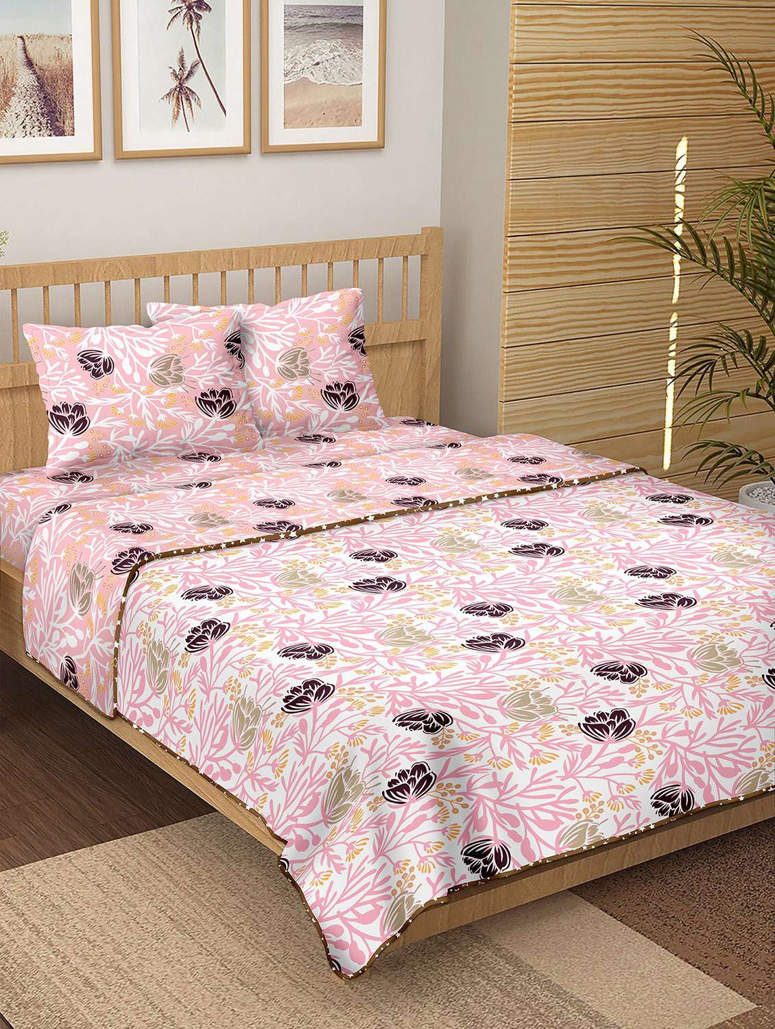 - » 150 tc floral print cotton 4-piece bedding king size set (1 dohar, 1 bedsheet with 2 pillow covers )