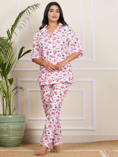 - Sleep in comfort with our wide range of women’s nightwear sets made of super cozy cotton blend fabrics and diverse neck designs available only at LimeRoad.