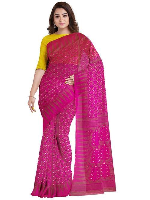- » pink cotton blend jamdani saree