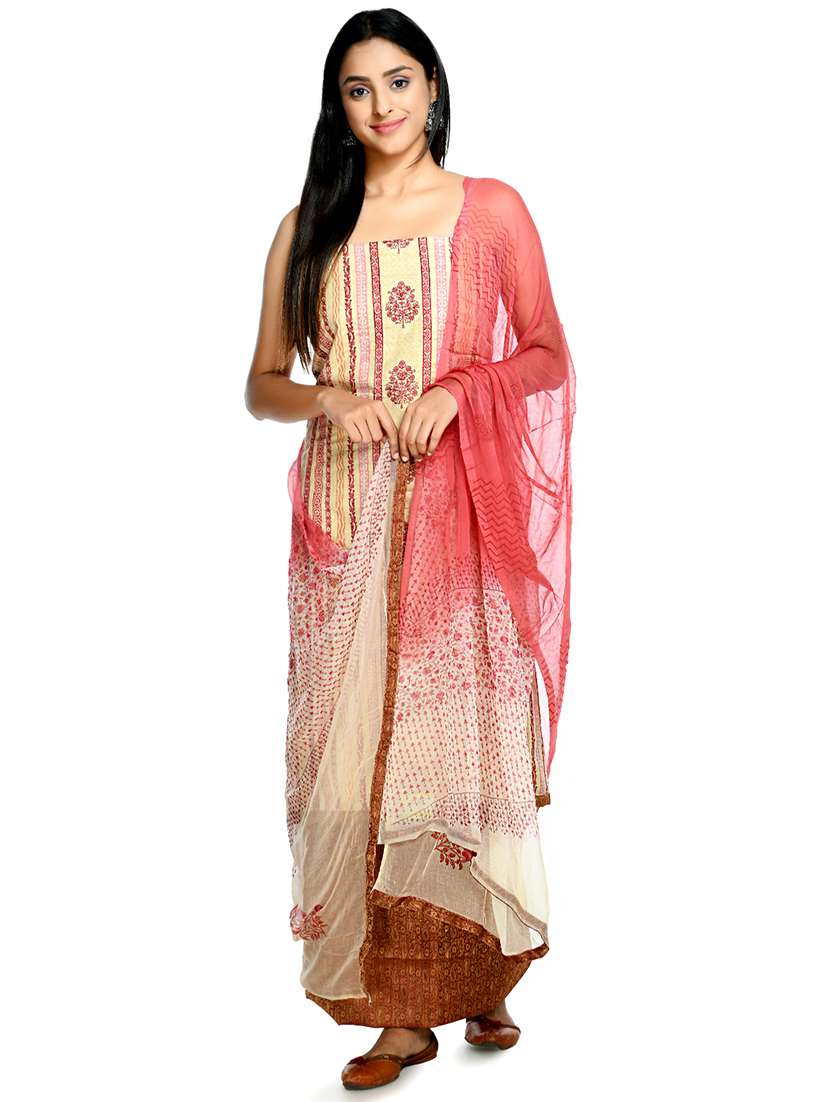 - Look ultra gorgeous in unstitched suits from Gendaphool and grab these beautiful suits in pink colour.