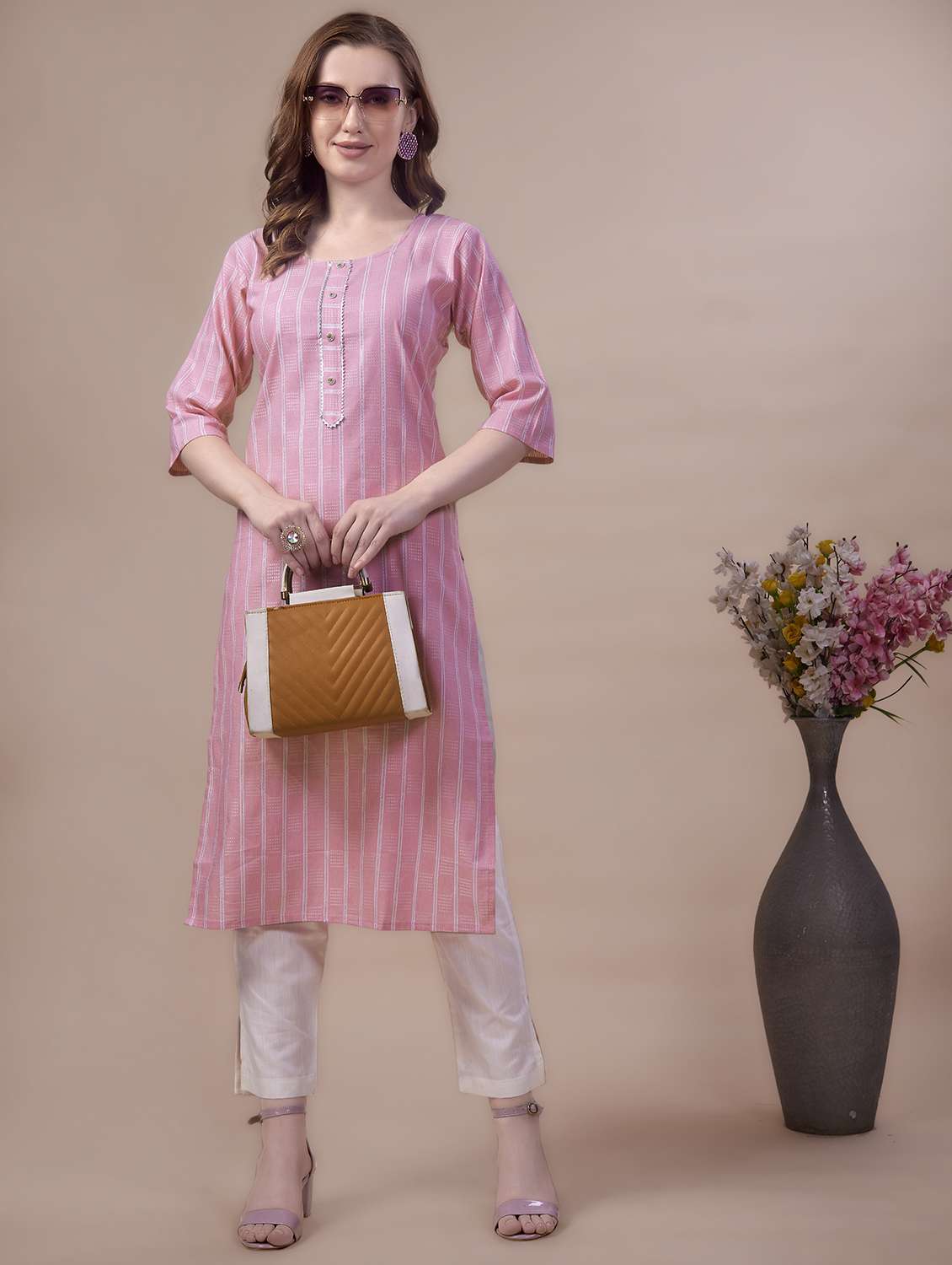 - » pink cotton blend aline kurta