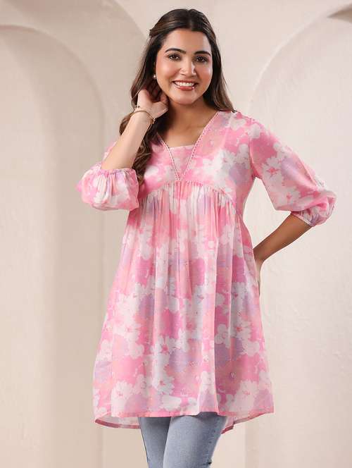- Are tunics your first love? Well, lay your hands on a spectacular collection of tunics from janasya and flaunt them in pink colours.