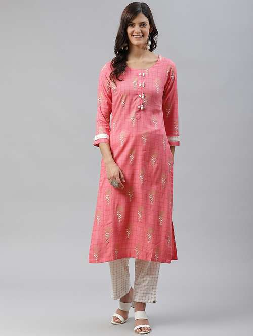 pink coloured jacquard kurta pant set - 18968635 - Very Small Image - 1
