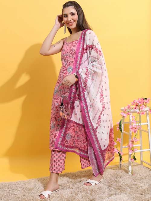 - Find gorgeous sets of ethnic wears in trending designs in pink colors suitable for casual wear of occasions.