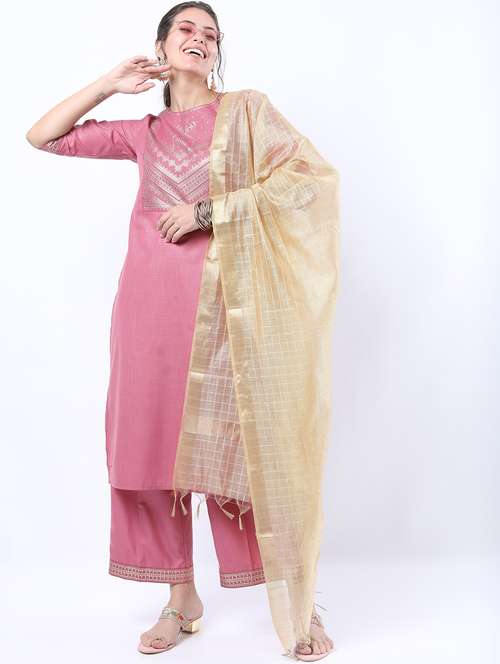 - Find gorgeous sets of ethnic wears in trending designs in pink colors suitable for casual wear of occasions.