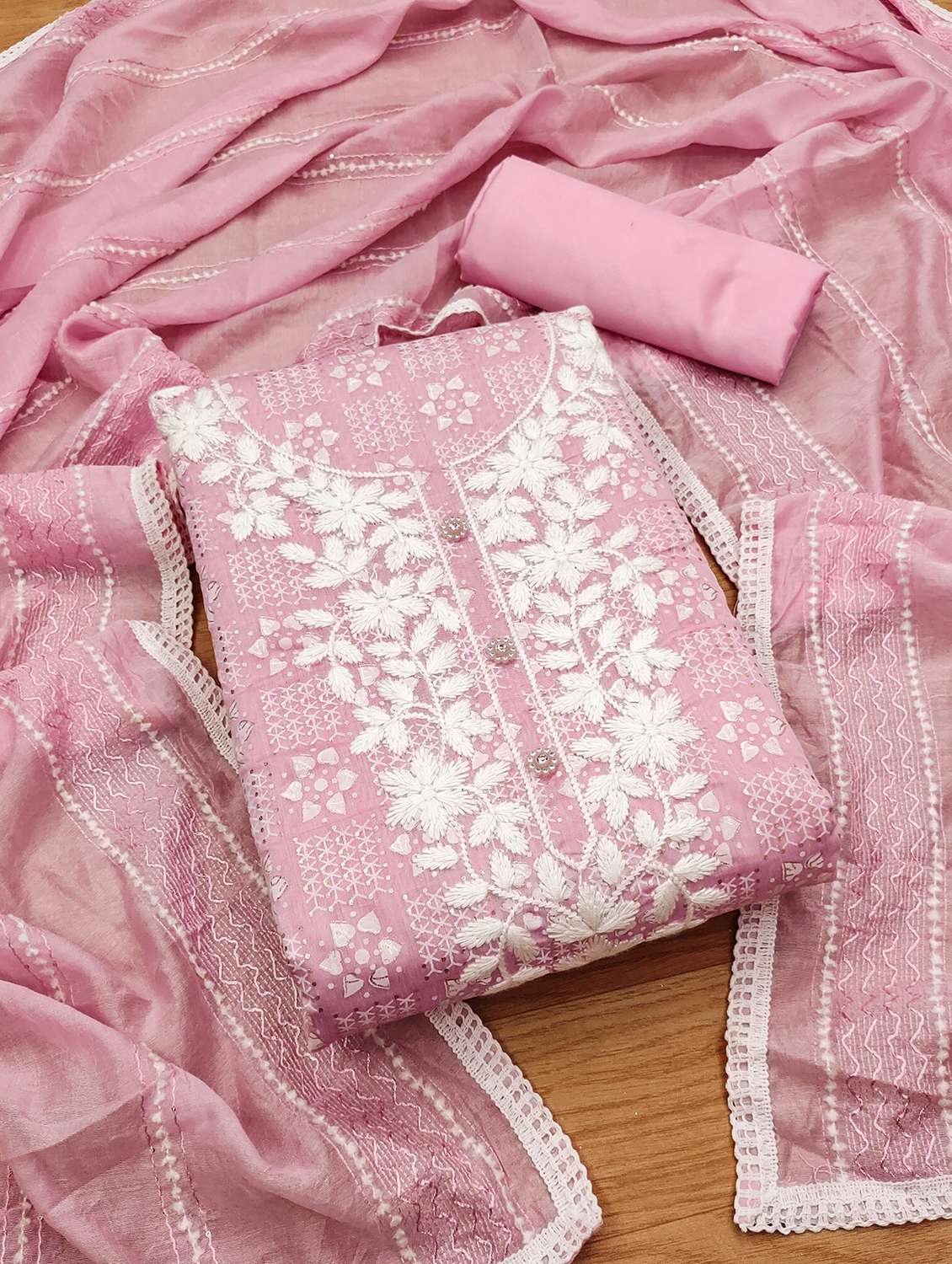 women printed embroidered unstitched suit set