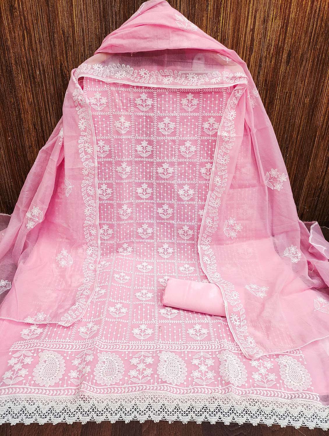 women solid with work embroidered unstitched suit set