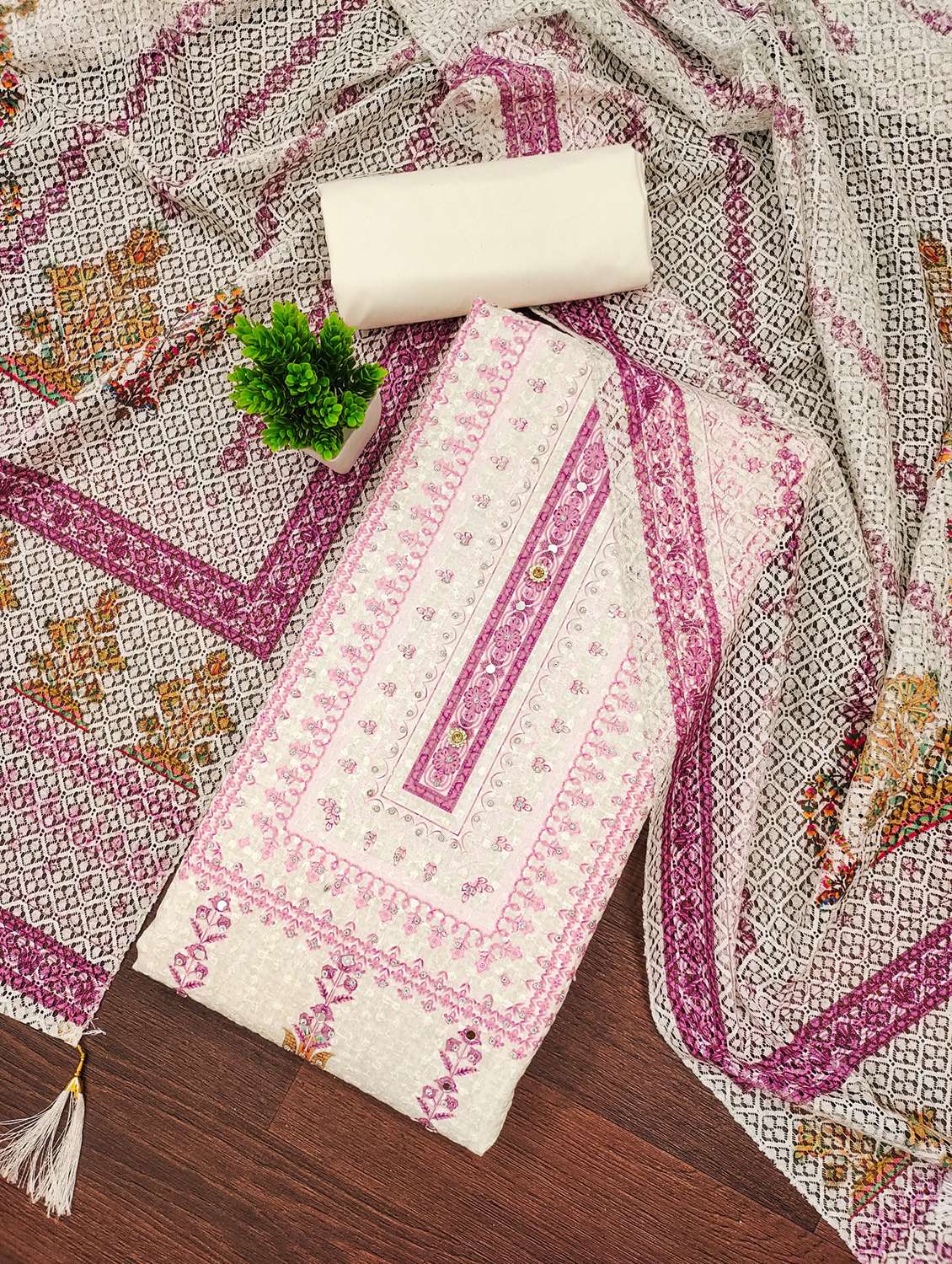 - Look ultra gorgeous in unstitched suits from Leeli Peeri Designer and grab these beautiful suits in white colour.