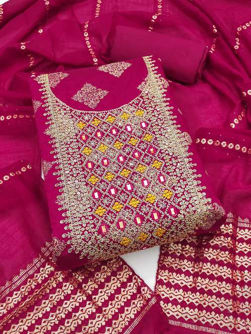 women printed embroidered unstitched suit set - 21983357 - Very Small Image - 1