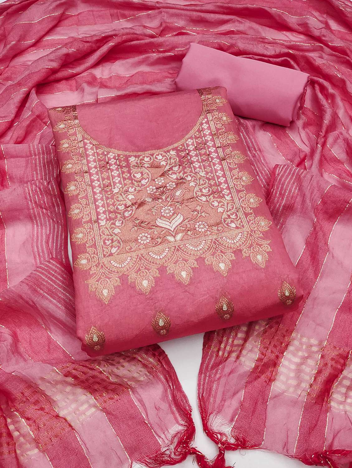- Look ultra gorgeous in unstitched suits from Leeli Peeri Designer and grab these beautiful suits in pink colour.