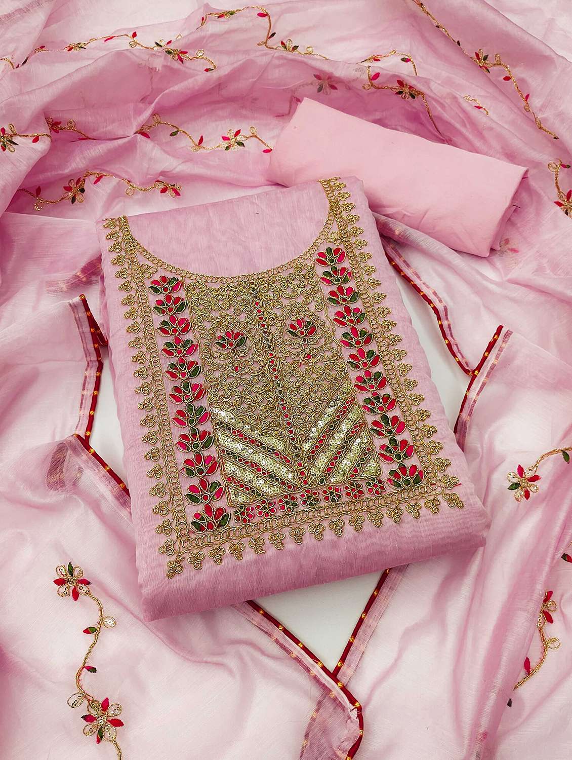 - Look ultra gorgeous in unstitched suits from Leeli Peeri Designer and grab these beautiful suits in pink colour.
