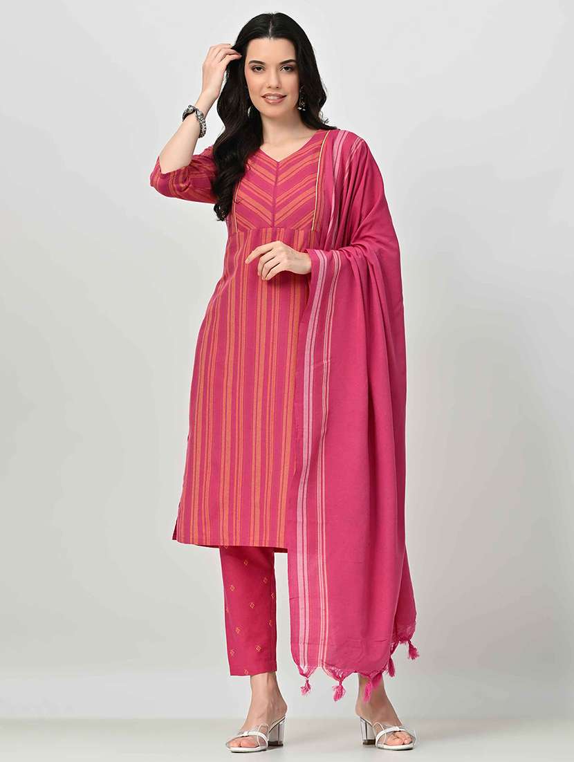 women stripes printed kurta pant set with dupatta - 21696484 -  Standard Image - 1 women stripes printed kurta pant set with dupatta - 21696484 -  Zoom Image - 1