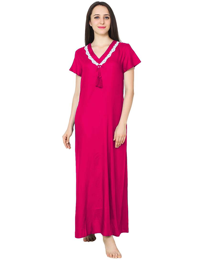 v neck solids nighty - 20033814 - Very Small Image - 1