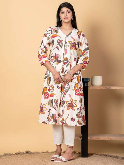 • Find gorgeous sets of ethnic wears in trending designs in cream colors suitable for casual wear of occasions.