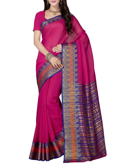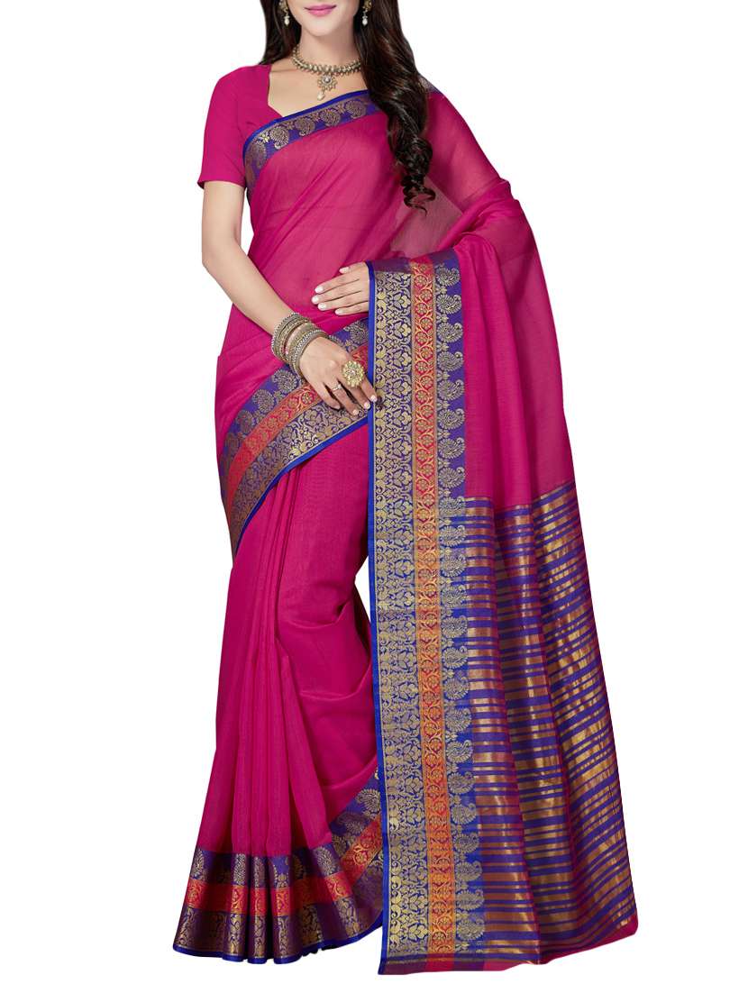 - » pink cotton blend maheshwari saree with blouse