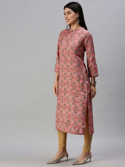 - Grab this beautiful kurta made up of cotton blend fabric featuring mandarin collar neck designs.