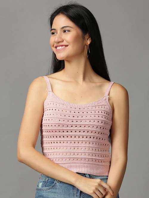 - » women's crop shoulder strap top