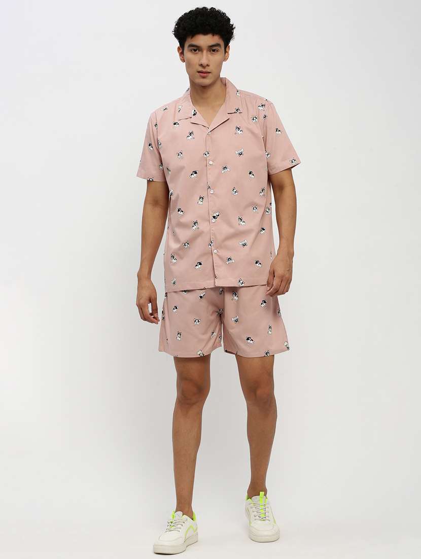 SHOWOFF Men's Short Sleeves Printed Peach Cuban Collar Co-Ords Set