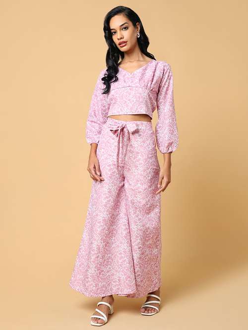 - » women pink cotton blend top and palazzos co-ord set