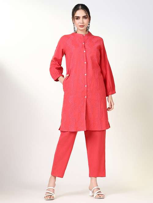 - » women embroidered three quarter sleeve kurta pant set