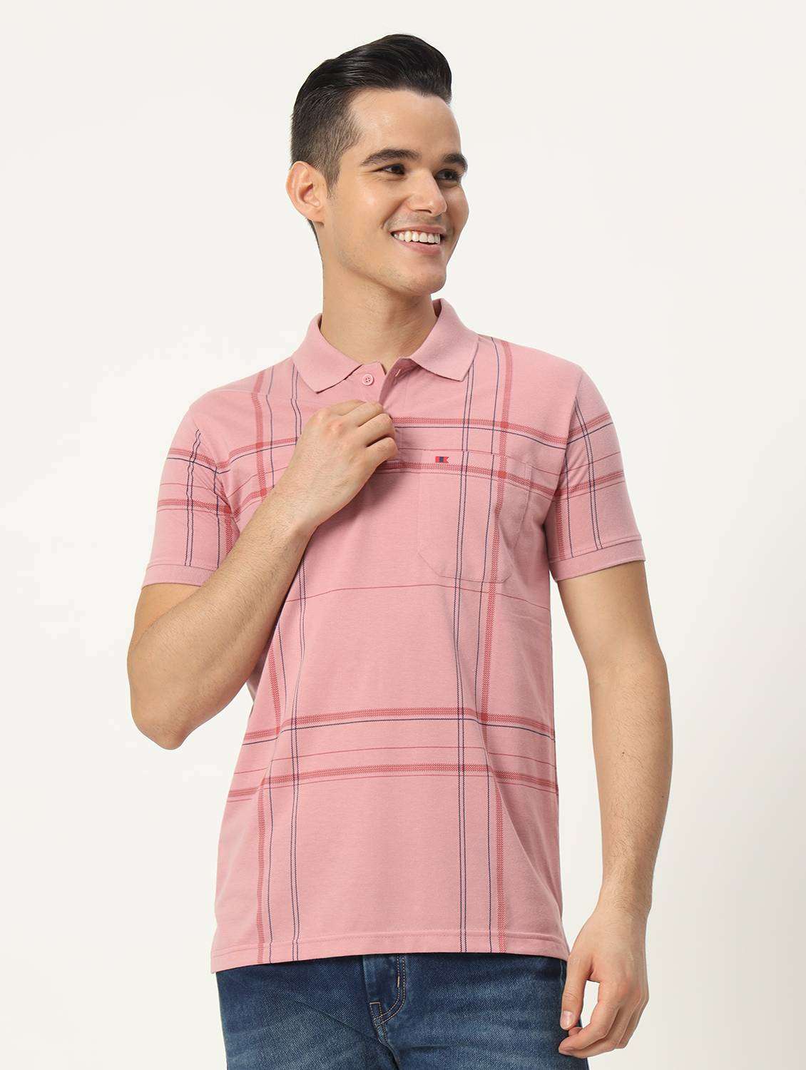 - » men check printed polo t-shirt