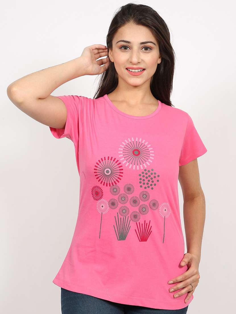 - » pink coloured printed regular tee