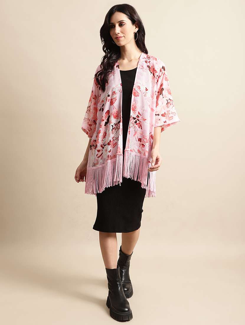 women pink floral printed regular shrug