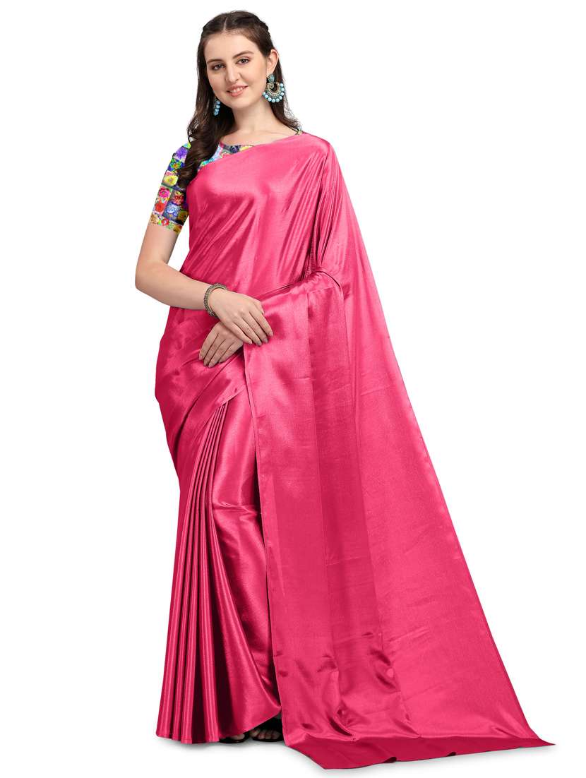 - » pink cotton blend plain saree