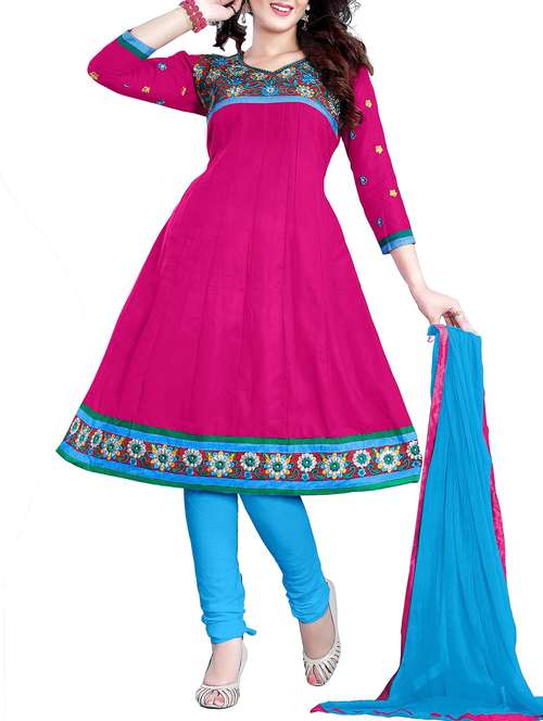 pink cotton embroidered dress material
