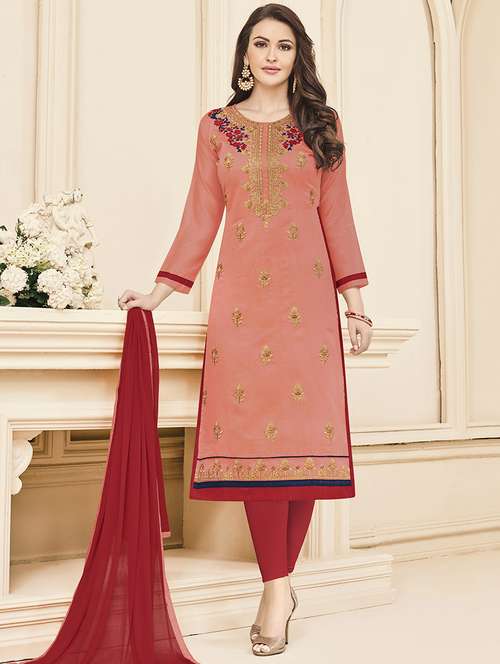 peach cotton unstitched suit