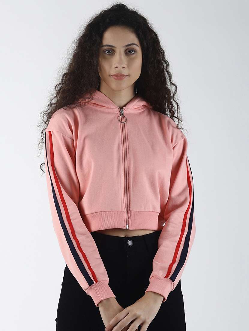 - » contrast taped hooded crop jacket