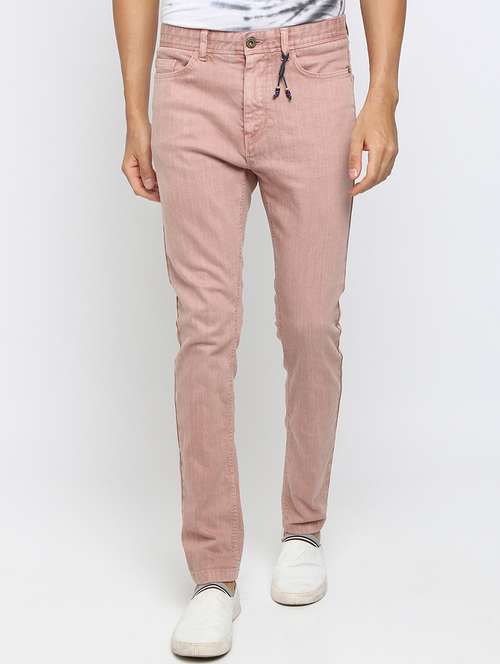pink solid flat front jean