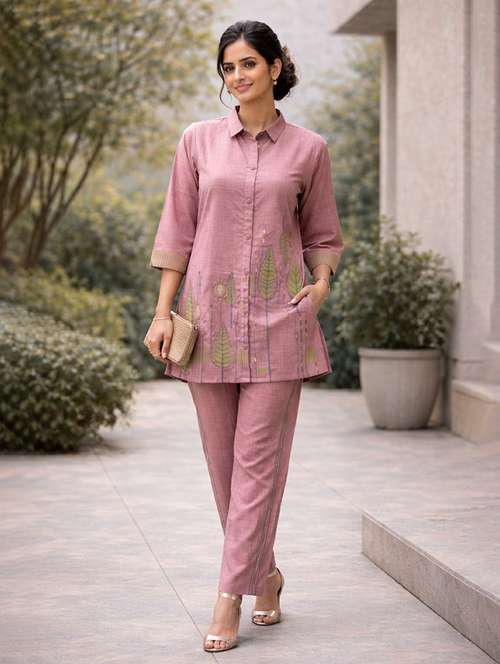 - » women solid with work three quarter sleeve ethnic co-ord set