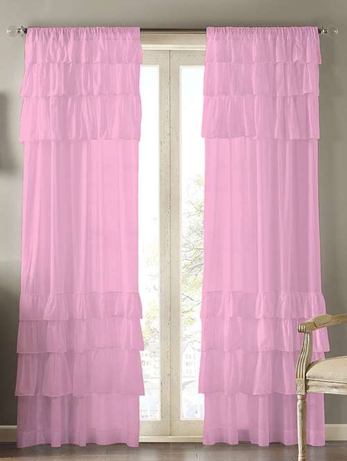 - » voil pink ruffle cotton door rod curtain set of 2