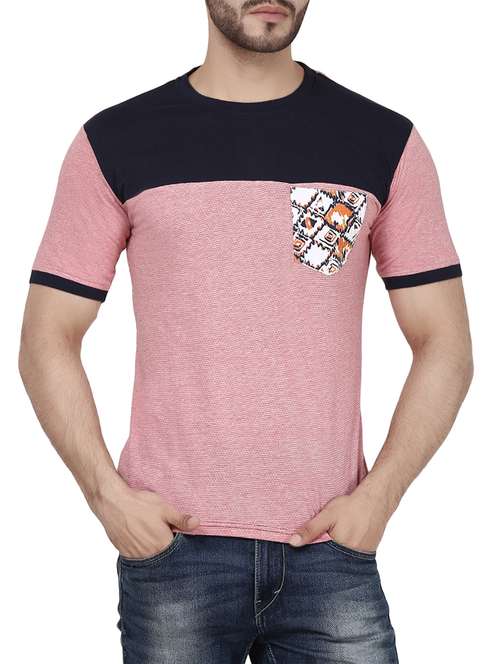 - » pink cotton color block tshirt