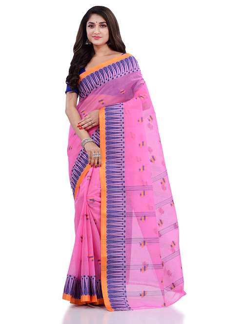 Explore the collection of beautifully Bengal Traditional Tant/Tangail Handloom Cotton Saree Hand Made Cotton Tant Saree of West Bengal Tikli Woven Designer Woven Design Pure Handloom Cotton Saree from Desh Bidesh. Tikli Woven Designer Saree Its Make you feel of love Each piece is elegantly crafted and will surely add to your wardrobe. Perfect Festival Saree for all ages Womens Pair this piece with heels or flats for a graceful look like Puja, Fasival, Casual, Party Designer Saree. You can wear this saree in all occasions specially Puja, Party and any occasion in your family or friends. The decorative material is Cotton Threads. Its unique color combination and Soft Bengal handloom Cotton tant saree The Elegant Class saree has comes from the Desh Bidesh. customer satisfaction is the utmost priority . The color may vary due to screen setting . Fabric: Pure Cotton; Length: 5.5 meter Set Content: Without Blouse Piece