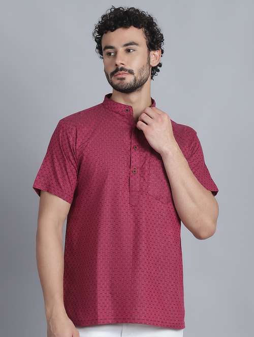- » men self design mandarin neck short kurta