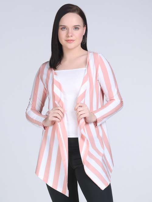 women striped long sleeve asymmetric shrug